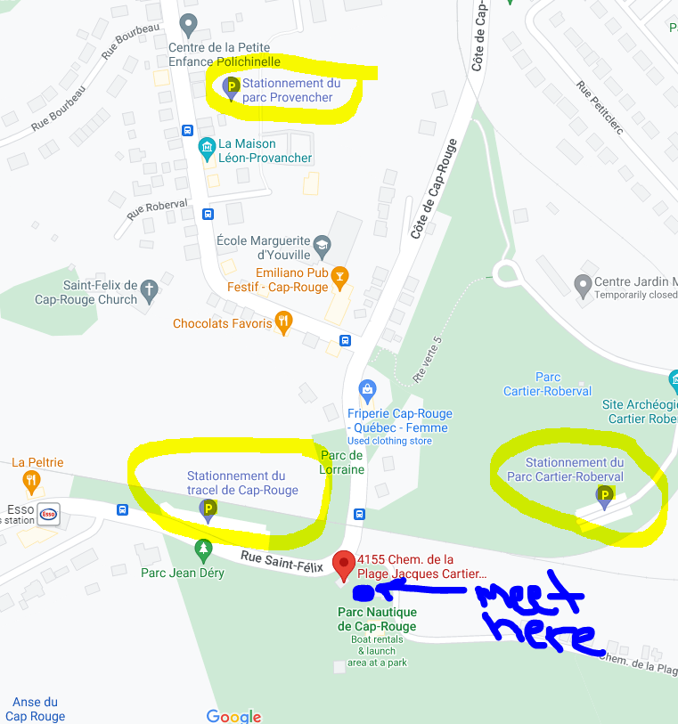 Meeting place: Parc nautique de Cap-Rouge
