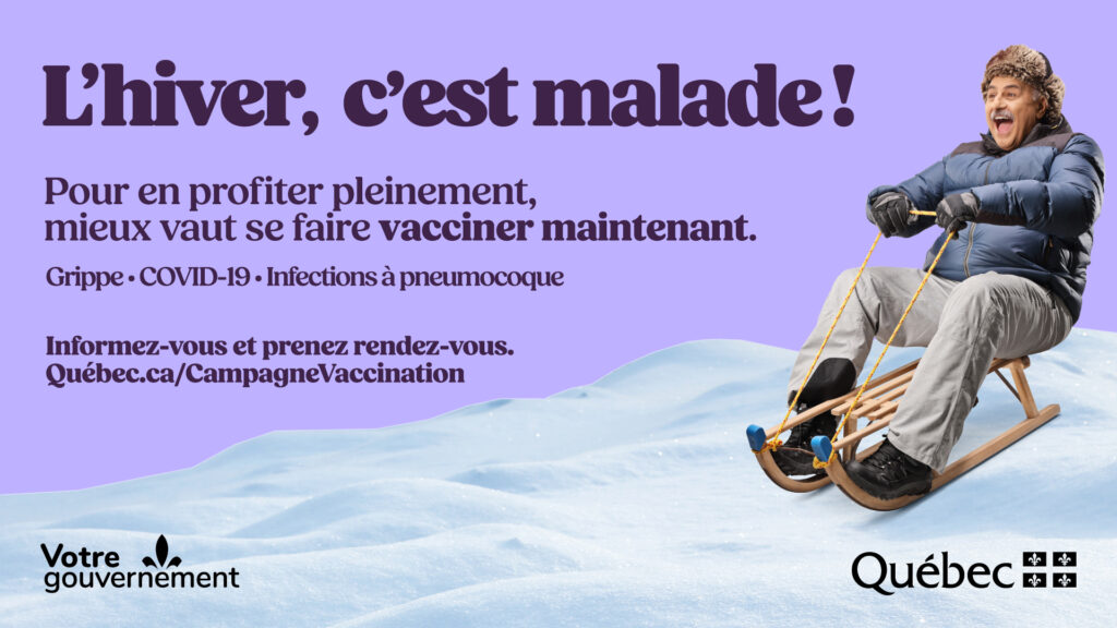 Pour profiter pleinement de l’hiver, mieux vaut se faire vacciner maintenant. La vaccination contre la grippe, contre la COVID-19 et contre les infections à pneumocoque est recommandée aux personnes qui risquent de développer des complications si elles contractent ces virus et infections.